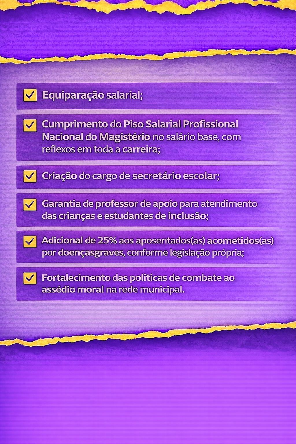 📍Cumprimento do Piso Salarial Profissional Nacional do Magistério no salário base, com reflexos em toda a carreira;