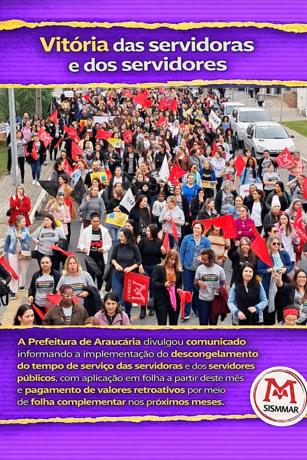 O Sindicato dos Servidores do Magistério Municipal de Araucária (Sismmar) ✊ manifesta seu total e irrestrito apoio 🤝 ao Sindicato dos Professores do Ensino Oficial
