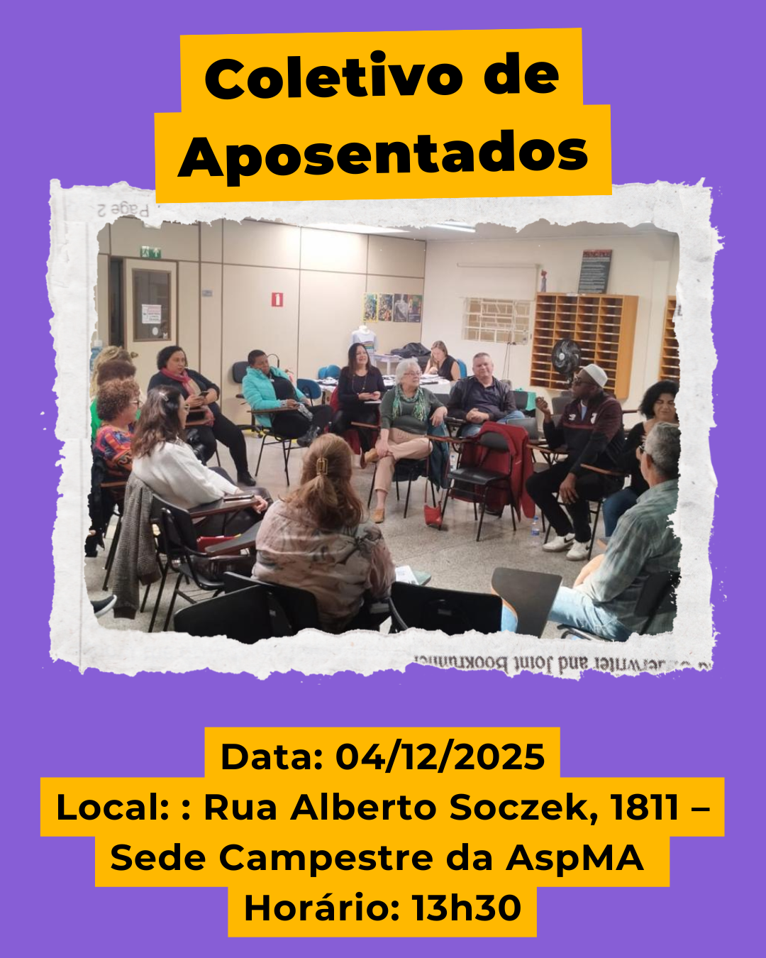 O nosso Coletivo de Aposentados convida todos os aposentados filiados ao Sismmar para celebrar mais um ciclo de conquistas, aprendizados e momentos especiais. Este é