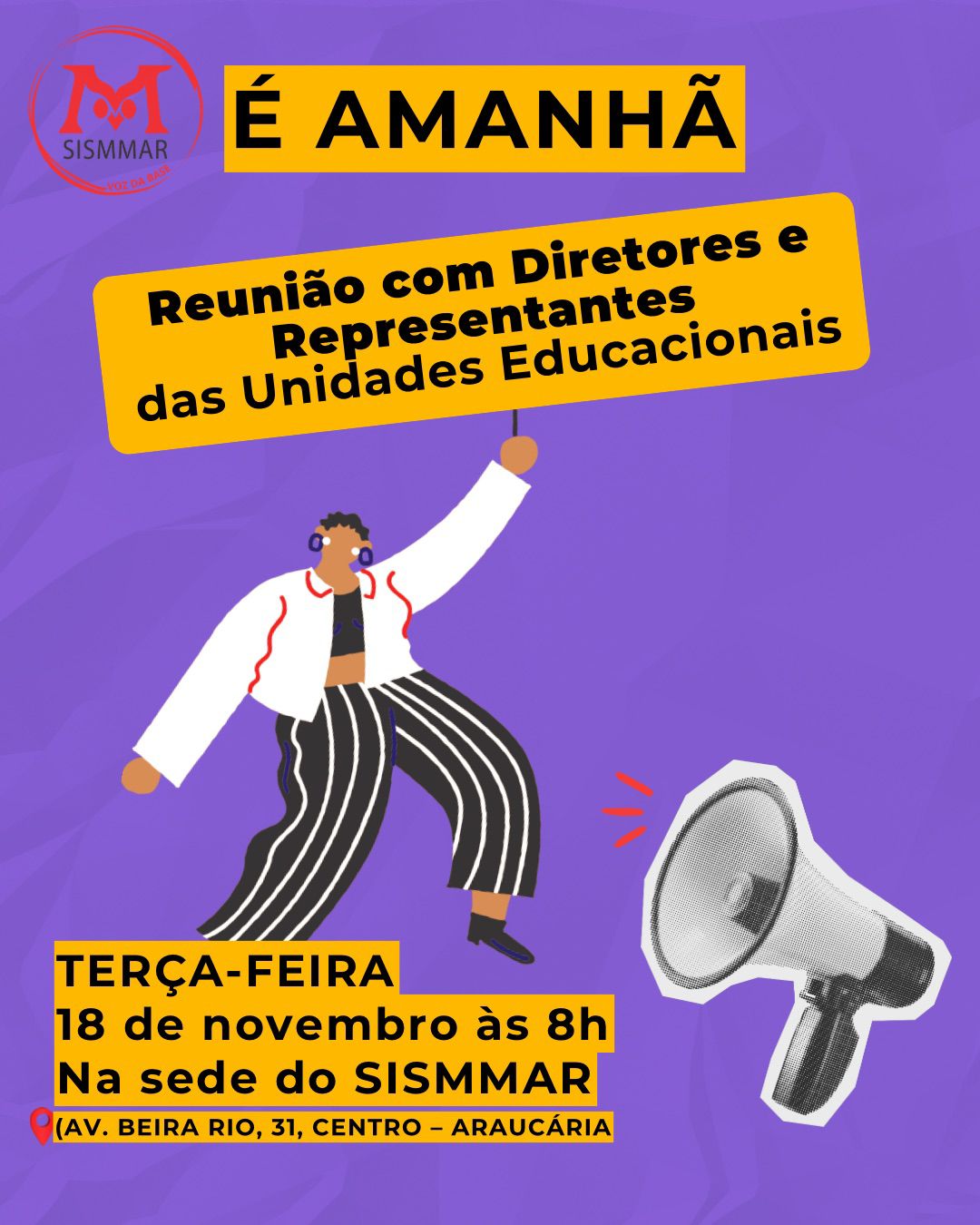 👉🏼 Reforçamos o convite para a reunião com diretores(as) ou representantes das unidades educacionais, que acontece amanhã, 18 de novembro, às 8h, na sede do