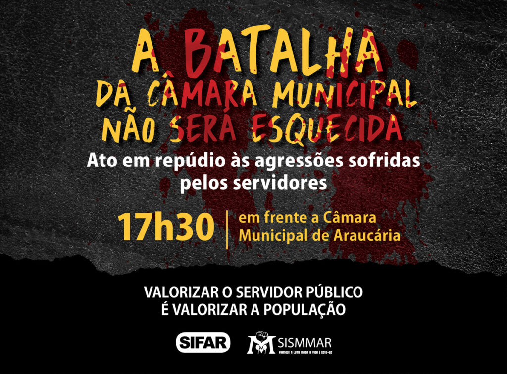 Na próxima segunda-feira (04), às 17h30, em frente à Câmara Municipal (Rua Irmã Elizabeth Werka, 55 – Estação), servidores e população estarão reunidos em repúdio às agressões sofrida no trágico 03/09, onde a guarda municipal, sob comando do Secretário de Segurança Pública Antônio Edson do Santos de Souza, promoveu um verdadeiro massacre contra os servidores […]