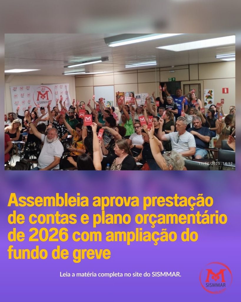 O SISMMAR informa que, no último dia 11/12, foi realizada a Assembleia Geral Extraordinária da Comissão de Ética, convocada exclusivamente para a apresentação, apreciação e votação do relatório final referente à Denúncia 01/2025. O documento, composto por 44 páginas, foi lido integralmente aos presentes, garantindo transparência absoluta em todas as etapas do processo. No relatório […]