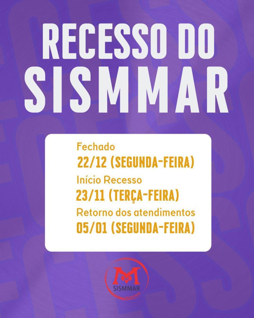 O SISMMAR entrará em recesso conforme o seguinte cronograma: 📅 22/12 (segunda-feira) – Fechado para atendimento 📅 23/12 (terça-feira) – Início do recesso 📅 05/01 (segunda-feira) – Retorno dos atendimentos Ao final de mais um ano de lutas, conquistas e aprendizados, agradecemos a todas e todos que caminharam conosco ao longo de 2025. Que o […]