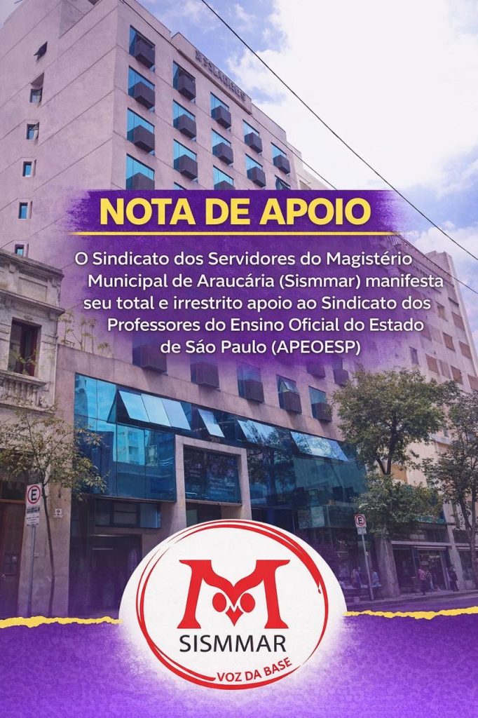 O Sindicato dos Servidores do Magistério Municipal de Araucária (Sismmar) ✊ manifesta seu total e irrestrito apoio 🤝 ao Sindicato dos Professores do Ensino Oficial do Estado de São Paulo (APEOESP), à sua direção, funcionárias, funcionários, professoras e professores 👩🏫👨🏫, diante da invasão ocorrida na Sede Central da entidade 🏢, em São Paulo, no dia […]