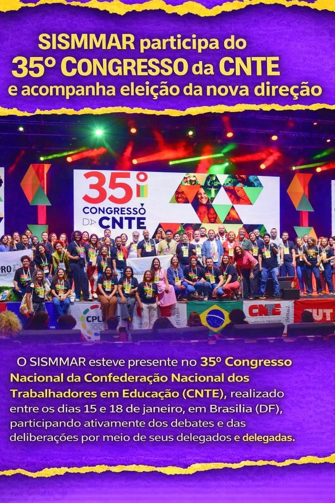 O SISMMAR esteve presente no 35º Congresso Nacional da Confederação Nacional dos Trabalhadores em Educação (CNTE), realizado entre os dias 15 e 18 de janeiro, em Brasília (DF) 🇧🇷, participando ativamente dos debates e das deliberações por meio de seus delegados e delegadas. O Congresso reuniu cerca de dois mil delegados e delegadas de todas […]