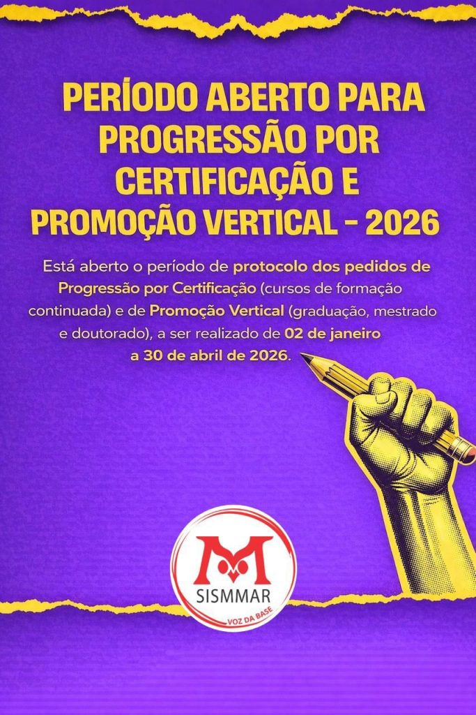 Está aberto o período de protocolo dos pedidos de Progressão por Certificação (cursos de formação continuada) e de Promoção Vertical (graduação, mestrado e doutorado), que deve ser realizado de 02 de janeiro a 30 de abril de 2026, exclusivamente de forma online, por meio do sistema Atende.Net, na área do servidor. ‼️É fundamental que cada […]
