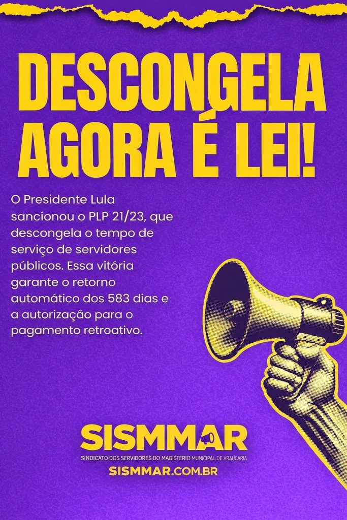 ✅ O Senado Federal aprovou o Descongela Já (PLP 143/2020) com 67 votos favoráveis, garantindo o reconhecimento retroativo do tempo de serviço entre 27/05/2020 e 31/12/2021. 🦠 Mesmo durante a pandemia, com os serviços públicos funcionando e servidores na linha de frente, direitos foram congelados pela LC nº 173/2020. Agora, a justiça começa a ser […]
