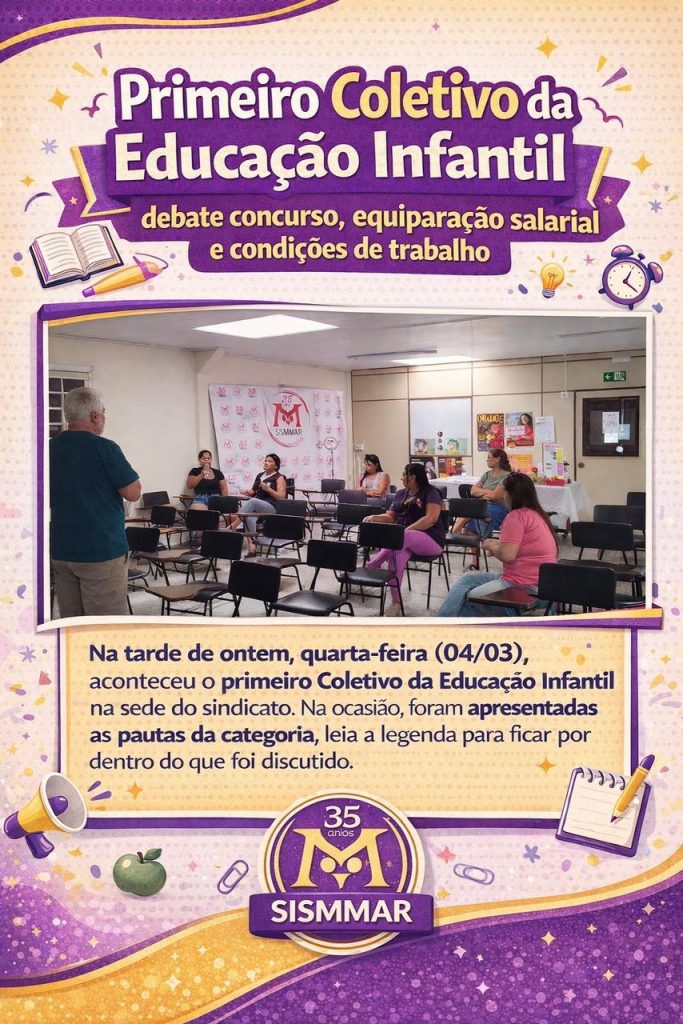 🗓️ Na tarde de ontem, quarta-feira (04/03), aconteceu o primeiro Coletivo da Educação Infantil na sede do sindicato. Na ocasião, foram apresentadas as pautas da categoria. 📌 Entre os principais pontos discutidos está a questão do concurso público para a Educação Infantil, cujo edital prevê exigência de nível médio, e não de nível superior, como […]